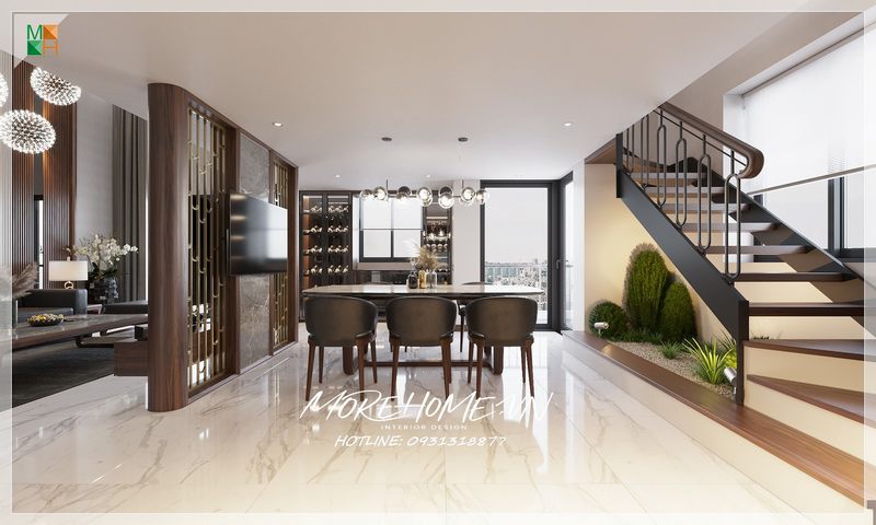 Ngoài ra, việc kết hợp ánh sáng cũng là yếu tố quan trọng trong thiết kế nội thất phòng ăn. Sử dụng đèn chùm hoặc đèn treo với kiểu dáng sáng tạo sẽ không chỉ làm tăng tính thẩm mỹ mà còn tạo ra bầu không khí ấm áp, lý tưởng cho những buổi tụ họp cùng gia đình và bạn bè. Cuối cùng, đừng quên thêm cây xanh vào không gian; những chậu cây nhỏ xinh có thể làm dịu mắt và mang lại sức sống cho căn phòng, biến nó thành nơi lý tưởng để thưởng thức những bữa ăn ngon miệng.